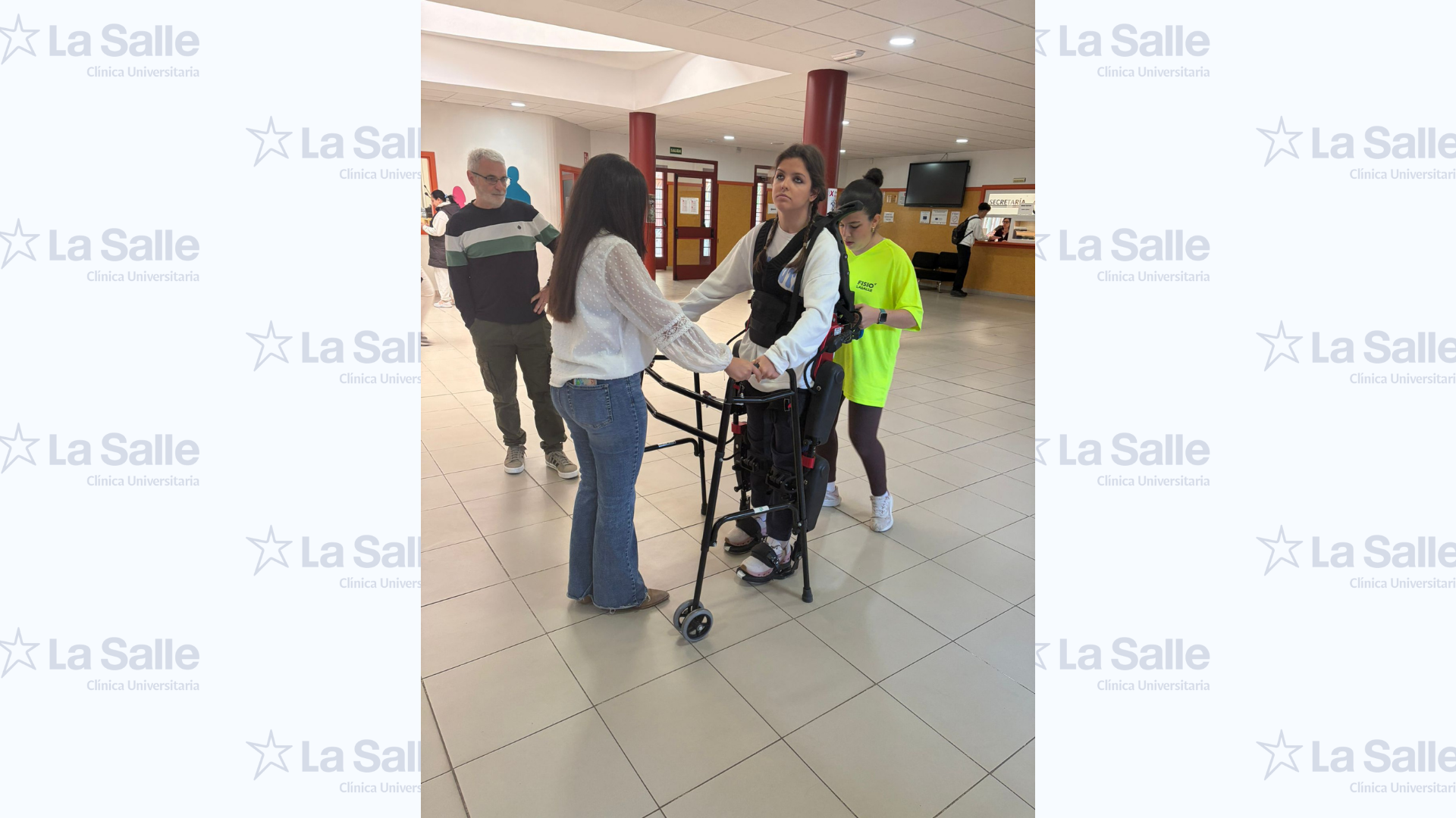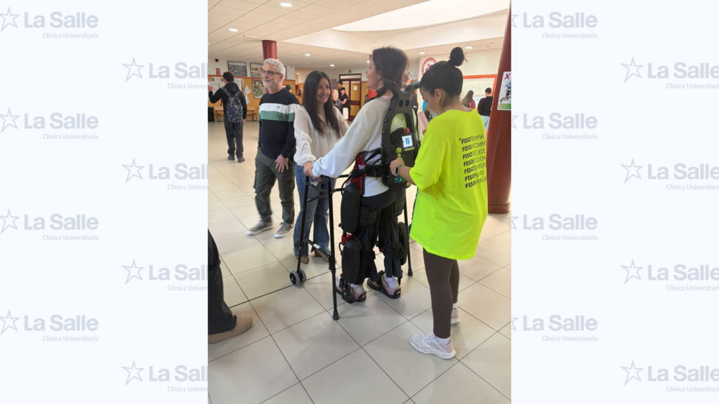 La protagonista es Eva. Dos días a la semana, Blanca, fisioterapeuta de la Clínica Universitaria La Salle, se desplaza hasta su centro escolar para realizar con ella sesiones de fisioterapia robotizada mediante el exoesqueleto de marcha de la Clínica. No se trata solo de acercar una tecnología avanzada, se trata de llevar esa intervención al lugar donde la niña aprende, convive, juega y construye su participación diaria, su instituto.