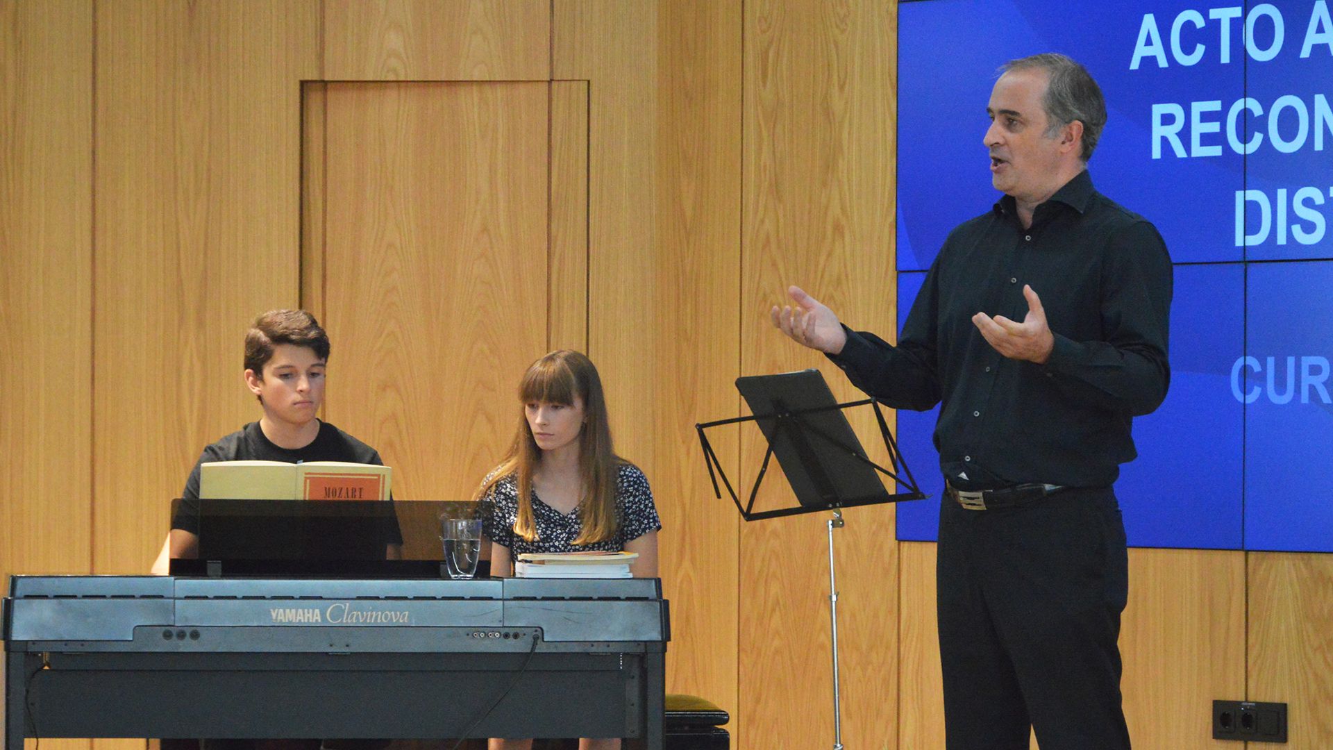 Tras el agradecimiento a todos los homenajeados por parte del Hno. José Mª Pérez Navarro, el presidente clausuró el acto y se dio paso a las interpretaciones artístico-musicales a cargo del Director del Coro Maravillas, D. Javier Ibarz, y su hijo, Juan Ibarz, quienes ofrecieron un repertorio de Mozart, Beethoven, Schubert, Brahms, Fauré y Pérez Soriano.