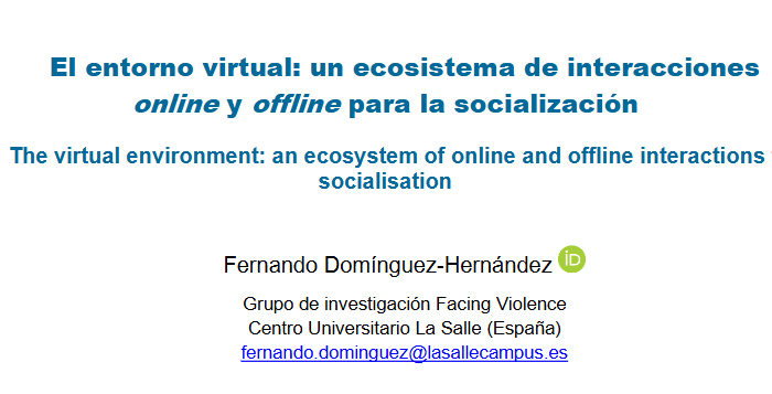 Desde el área de investigación nos complace compartir con vosotros y vosotras una nueva publicación de nuestro compañero Fernando Domínguez Hernández. El artículo, titulado “El entorno virtual: un ecosistema de interacciones online y offline para [...]