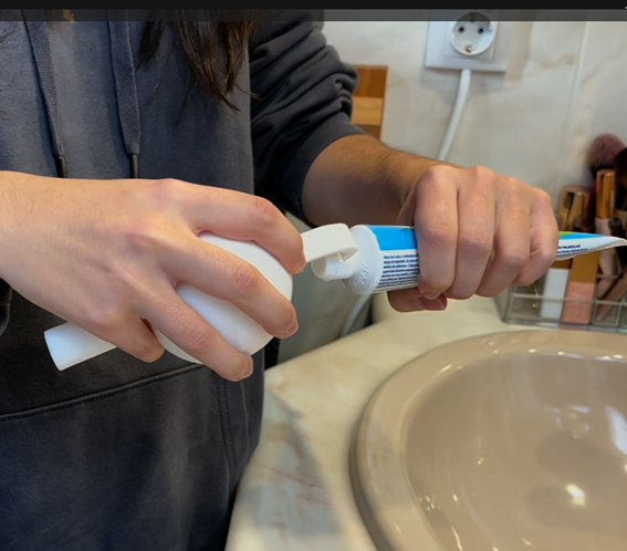 El producto más votado por el público fue el Abrebrush Teeth, un dispositivo pensado para personas con artritis u otras dificultades en la mano. Este artículo de apoyo combina un mango engrosado que facilita la sujeción del cepillo de dientes con un gancho ergonómico para abrir fácilmente el tubo de pasta. Los usuarios destacaron su funcionalidad simple pero eficaz, que permite una higiene bucal más independiente y con menor esfuerzo físico. Las autoras de este producto son las alumnas de 4º de Terapia Ocupacional, Celia Fernández, Pilar Reina y María Sánchez.