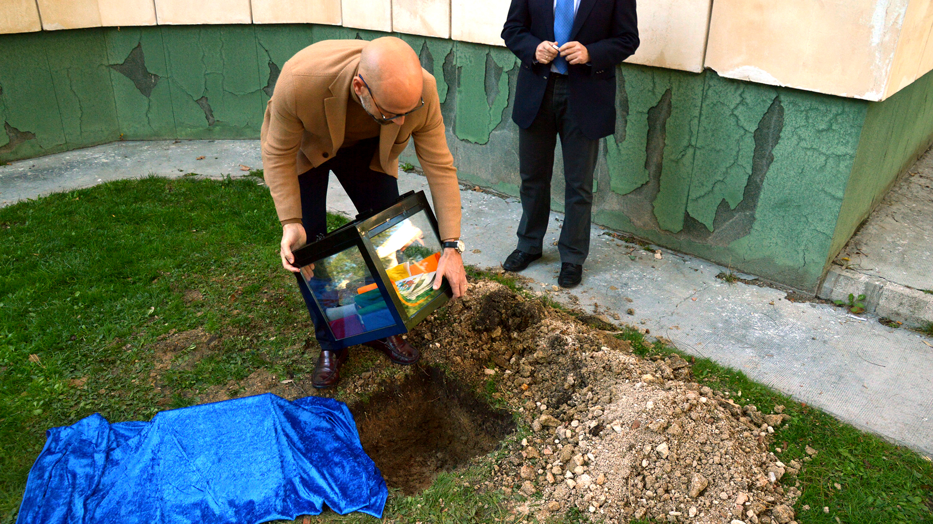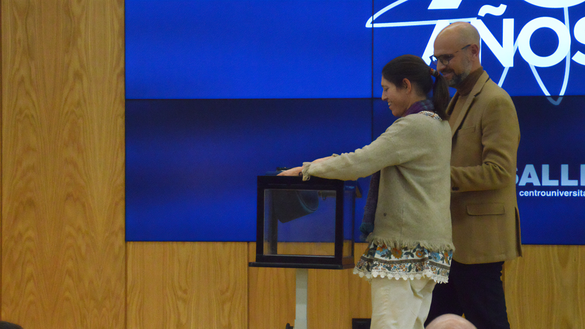El llenado simbólico de la cápsula del tiempo representó diversos aspectos del Centro, desde las becas hasta representaciones de cada ciclo y titulación. Se invitó a todos a salir al jardín, donde se desveló una placa conmemorativa seguida de un brindis con un Vino Español para cerrar la celebración de manera festiva.