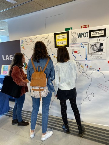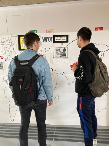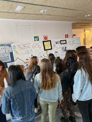 En el campus quisimos hacernos eco de esta celebración, como ya hiciéramos en años anteriores y propusimos el pasado día 28 de octubre realizar diferentes iniciativas para visibilizar esta profesión en el campus. Los alumnos de primer curso realizaron un mural interactivo, realizado con pintura conductiva, mostrando algunos de los hitos de la profesión en el mundo y en nuestro país. Junto con algunos alumnos de cuarto también se mostraron algunos ejemplos de intervenciones tradicionales en TO y se realizaron algunos talleres experimentales (limitaciones perceptivas en baja visión y limitaciones motóricas en Parkinson).