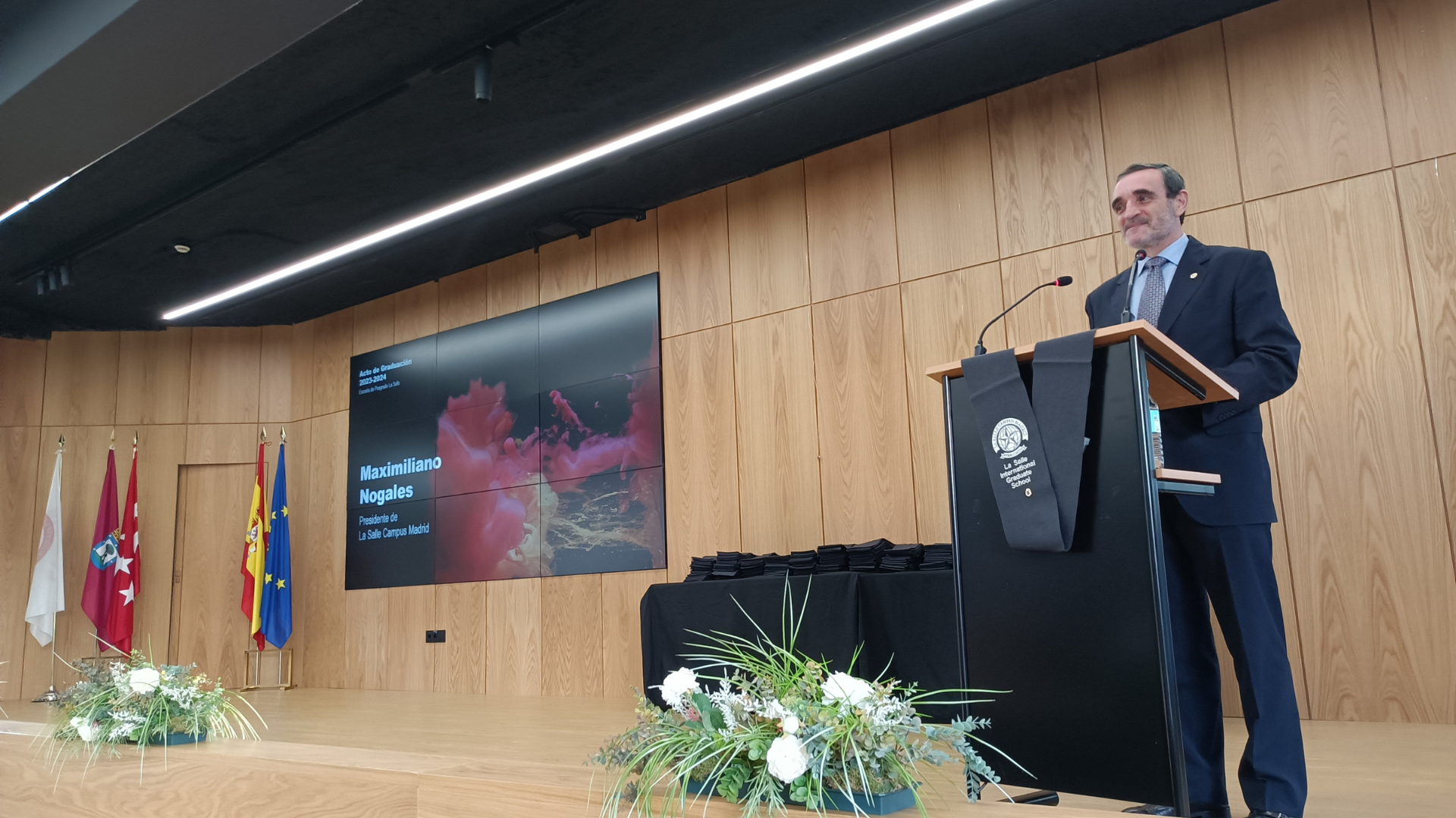 El acto comenzó con las cálidas palabras del Presidente del Centro Superior de Estudios Universitarios La Salle, el Hno. Maximiliano Nogales Morales quien destacó la pertenencia a esta gran comunidad global de La Salle, presente en todo el mundo y que comparte valores de fraternidad e unión.