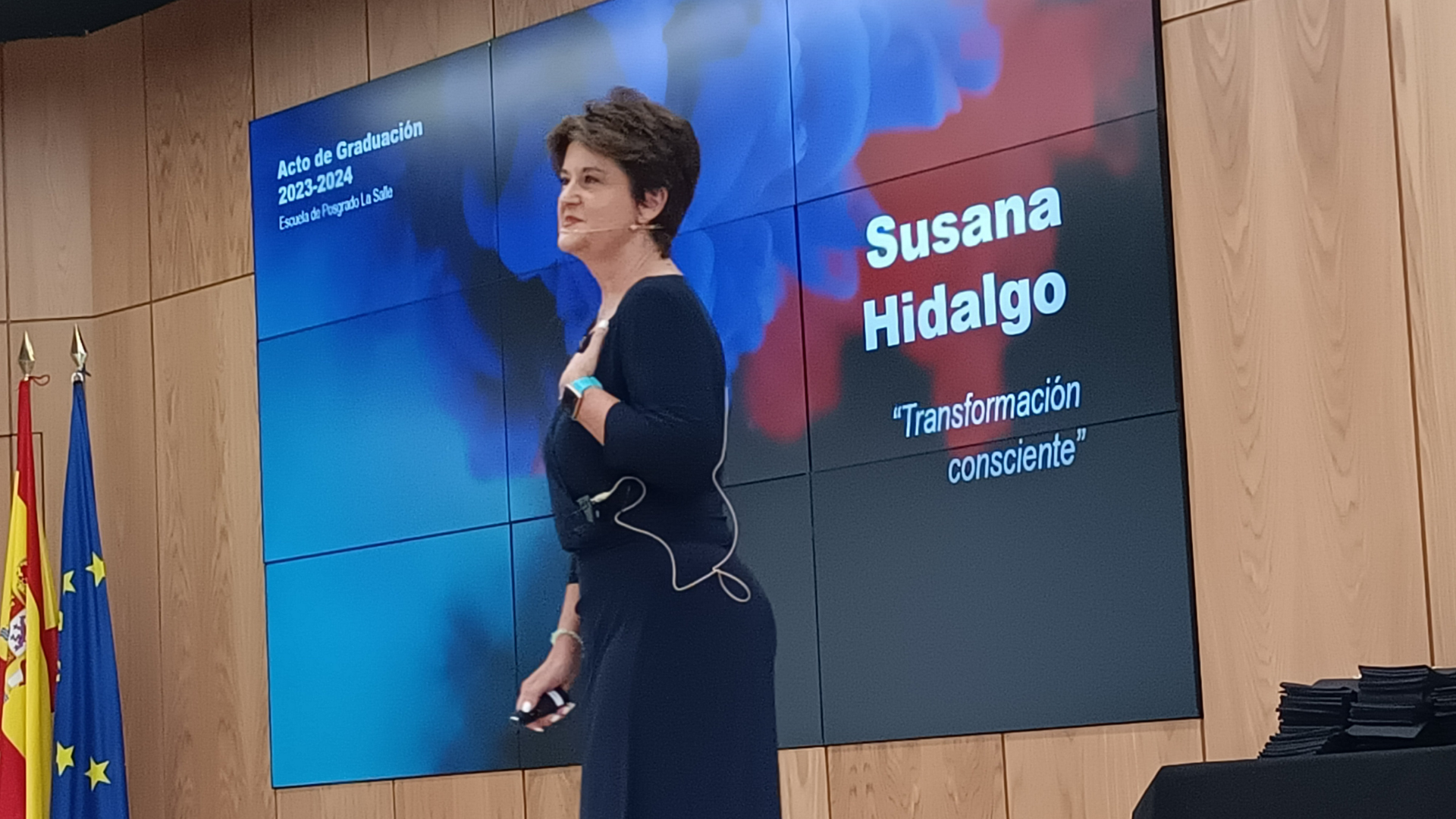 Para cerrar la ceremonia, la Directora de la Escuela de Posgrado expresó su profundo agradecimiento a todos los asistentes y deseó mucho éxito a los graduados, con la esperanza de que su paso por La Salle haya sido un camino lleno de ilusión y verdad, preparándolos para una vida más plena y satisfactoria.