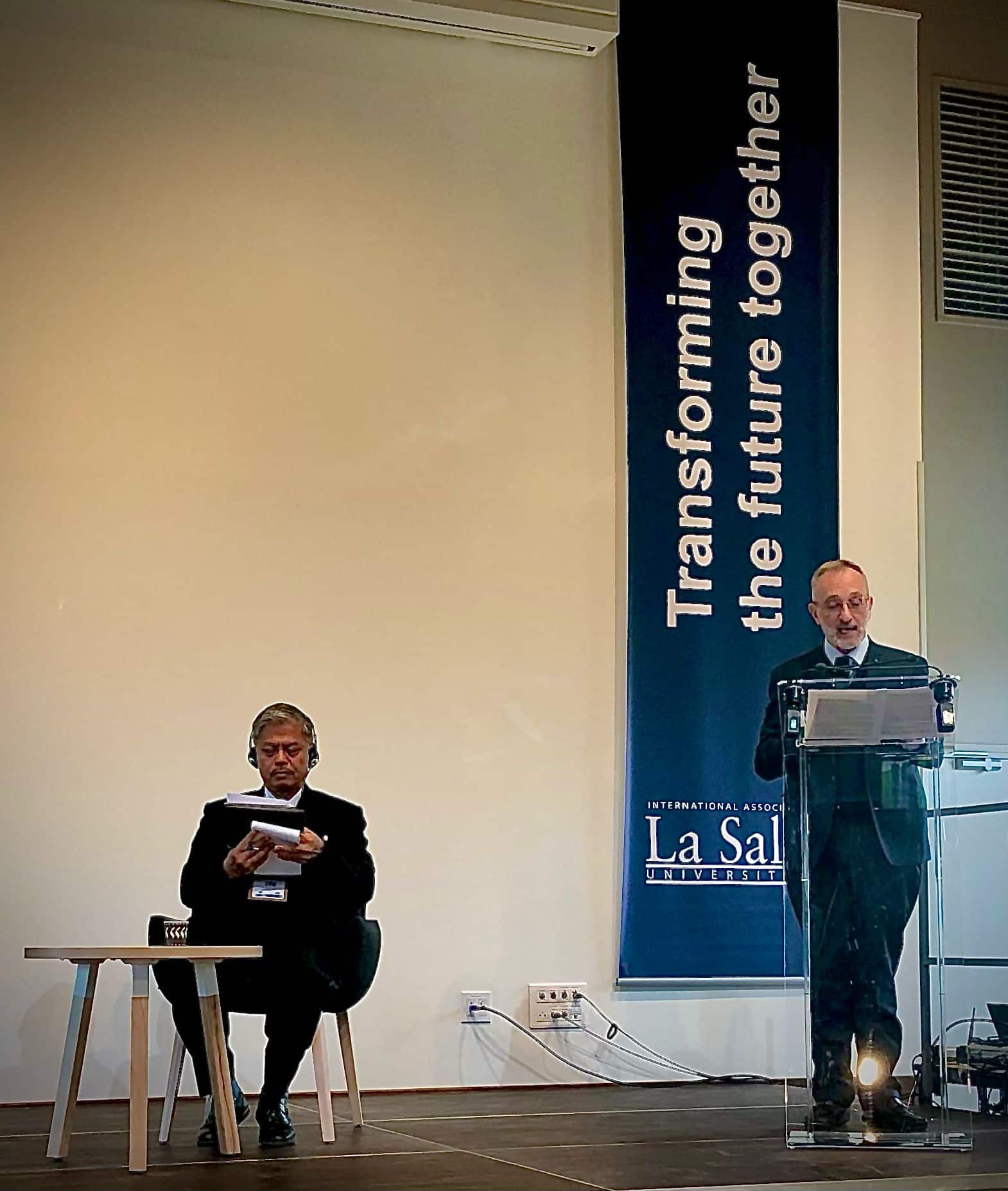 El segundo día en Francia, el hermano Carlos Gómez, Vicario General del Instituto de los Hermanos de las Escuelas Cristianas presenta la @lasalleorg red, sus ambiciones y proyectos para la educación superior.