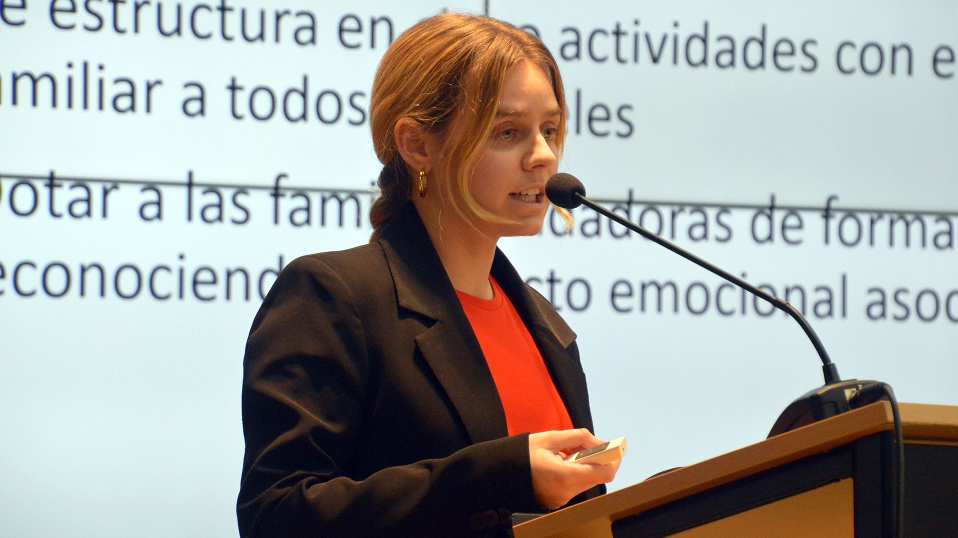 No pudo asistir, pero envió un video explicando que el objetivo de su trabajo era investigar la influencia de la sensibilidad oral y manual en la deglución que tan importante es para la alimentación.