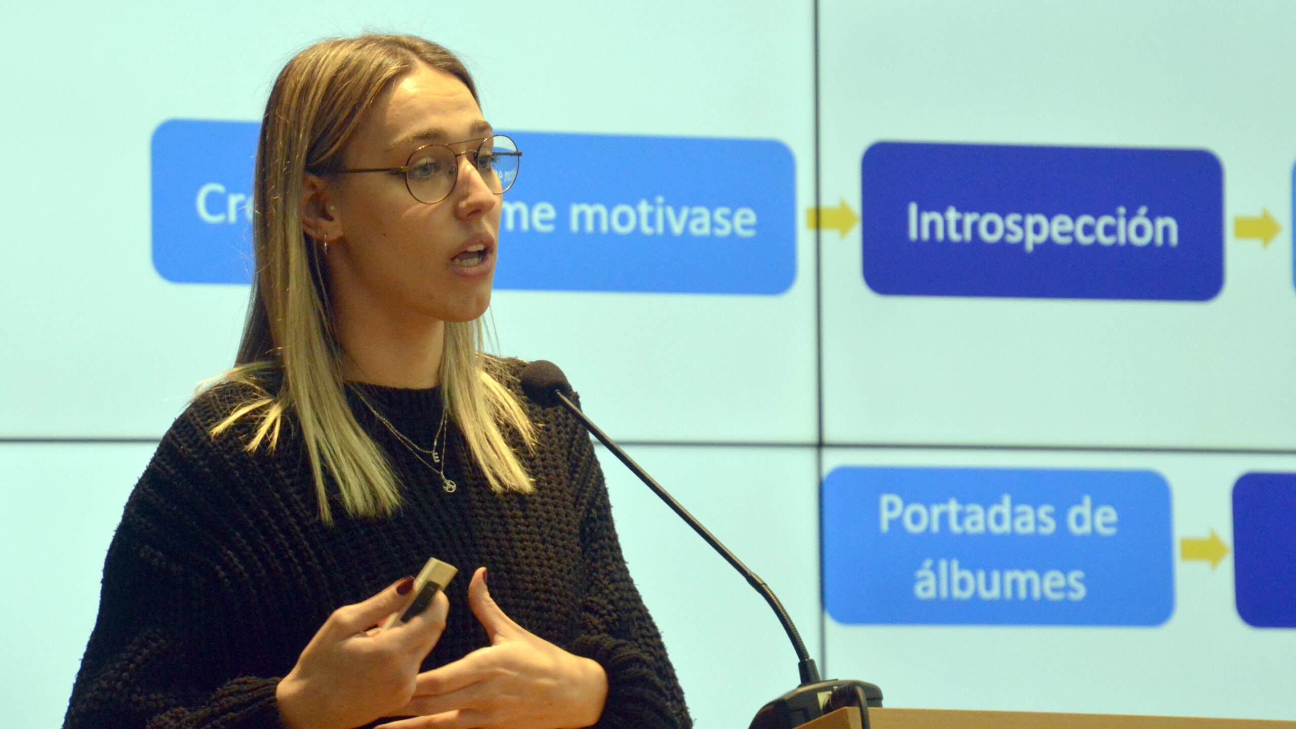 Nos ha hablado del arte como medio de «salvación» ante la dificultad, desde el punto de vista del arte como medio de autoconocimiento y canal para dar voz a quien no la tiene, reforzar la autoestima, favorecer las relaciones sociales y mejorar el proceso de intervención desde la Educación Social.