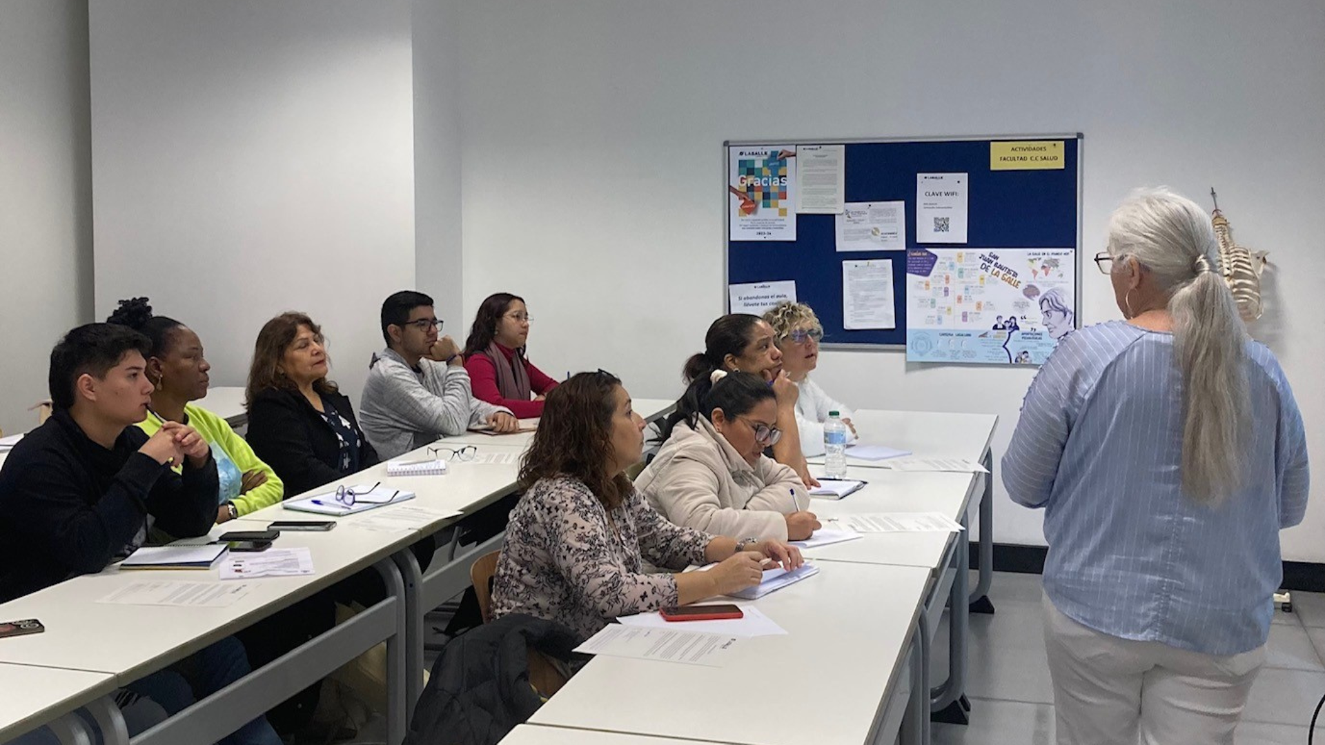 Los participantes también tuvieron la oportunidad de experimentar con diferentes elementos de un traje simulador de envejecimiento, proporcionándoles una perspectiva única sobre el envejecimiento y fomentando la empatía hacia las experiencias de los adultos mayores. Este taller resultó ser una valiosa contribución a la sensibilización y comprensión de los futuros profesionales sobre las necesidades de la población envejecida.