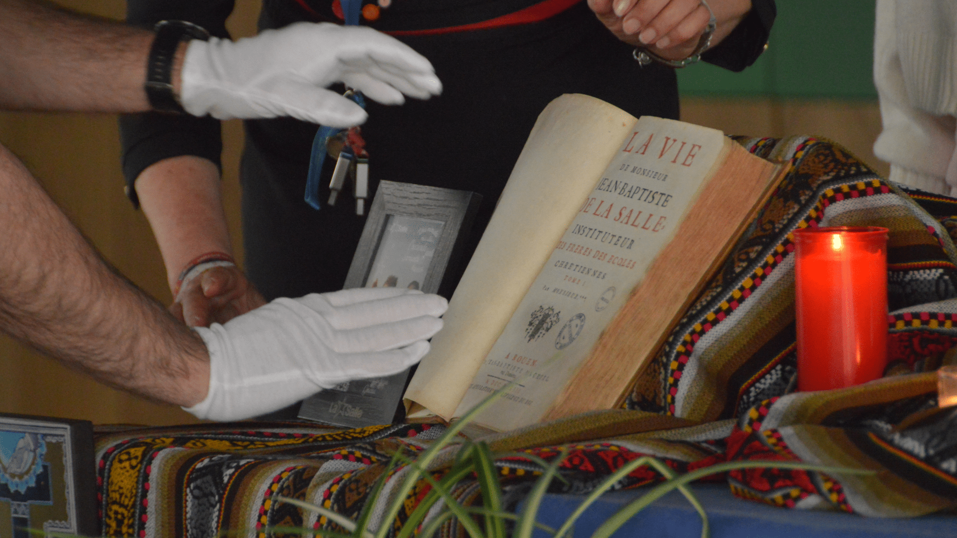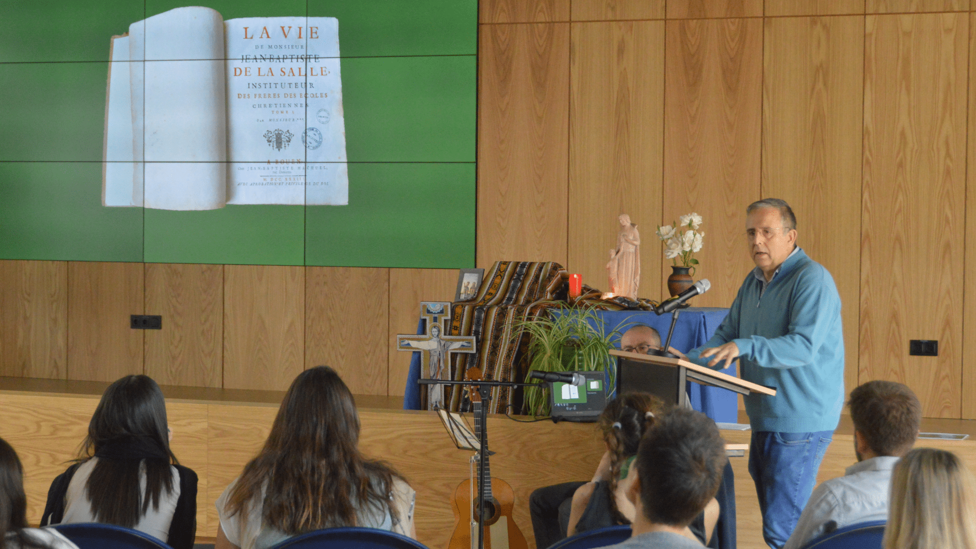 En esta ocasión, la celebración se ha iniciado con una oración a las 12h en el Salón de Actos del Edificio A en la que además se ha presentado un libro de 1733 sobre la vida de San Juan Bautista de La Salle, perteneciente a la Biblioteca del Instituto Superior San Pío X el cual fue regalado por el superior general de la época en 1956.