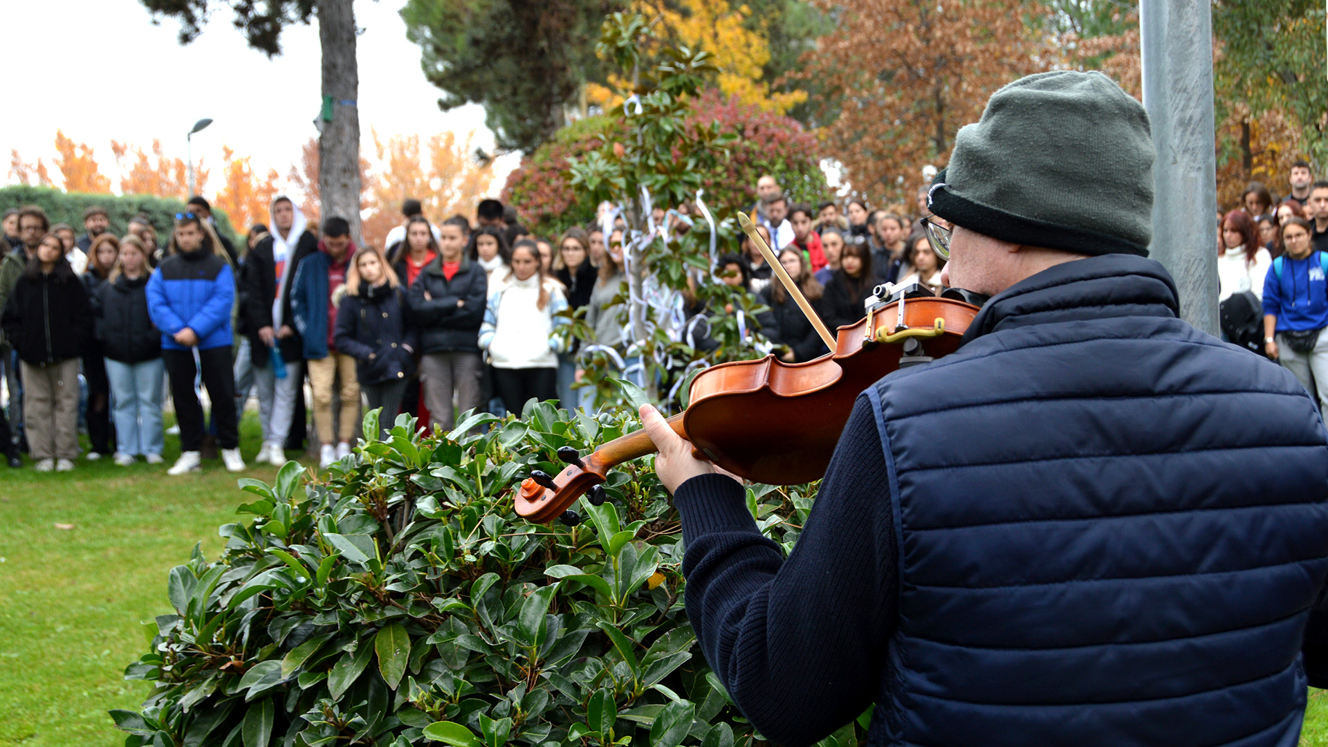 En un emotivo acto en el Centro Universitario, se ha llevado a cabo un gesto por la paz en solidaridad con las víctimas del conflicto en Israel y Palestina. Unidos al llamamiento por el alto el fuego y el fin de la violencia, el Hermano Javier Núñez, miembro de la comunidad lasaliana, ha colaborado tocando el violín. La iniciativa del Instituto de los Hermanos de las Escuelas Cristianas, busca promover la paz y la justicia, condenando enérgicamente el terrorismo y abogando por soluciones no violentas.