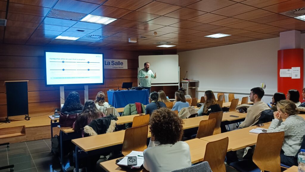 Uno de los momentos más participativos de la jornada fue el debate sobre el uso de la IA en el ámbito universitario. El alumnado reflexionó sobre cómo estas herramientas influyen en el desarrollo del trabajo académico, coincidiendo en la necesidad de utilizarlas como un apoyo que potencie, y no sustituya, los estándares de calidad, rigor y coherencia exigidos en la formación superior.