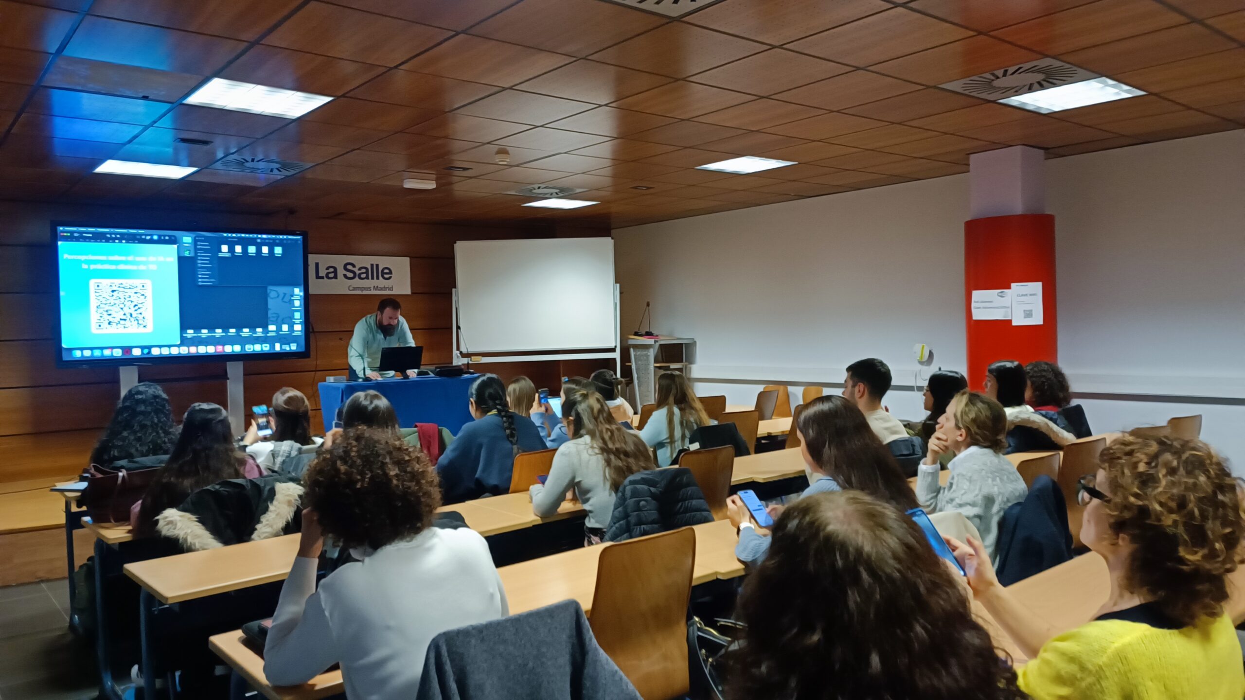 Uno de los momentos más participativos de la jornada fue el debate sobre el uso de la IA en el ámbito universitario. El alumnado reflexionó sobre cómo estas herramientas influyen en el desarrollo del trabajo académico, coincidiendo en la necesidad de utilizarlas como un apoyo que potencie, y no sustituya, los estándares de calidad, rigor y coherencia exigidos en la formación superior.