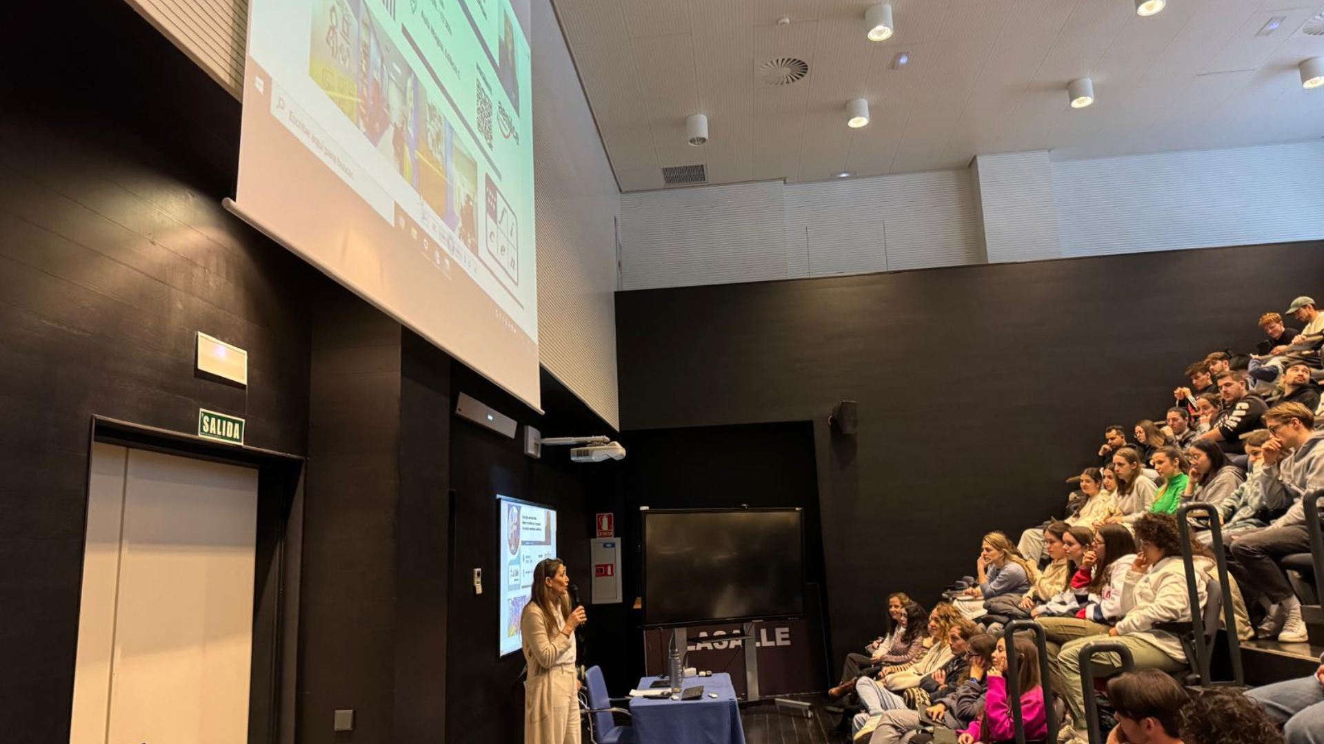La jornada también contó con la participación de Belén Vega, fisioterapeuta y terapeuta ocupacional antigua alumna de La Salle Centro Universitario, quien aportó su experiencia como estudiante y profesional. Belén realizó su rotatorio del Prácticum II de Fisioterapia en el mismo centro y, tras finalizar sus estudios hace tres años, ha continuado su trayectoria laboral como fisioterapeuta en dicha institución. Su testimonio sirvió para acercar a los estudiantes a la realidad profesional y reforzar la importancia de la formación práctica en su desarrollo profesional.