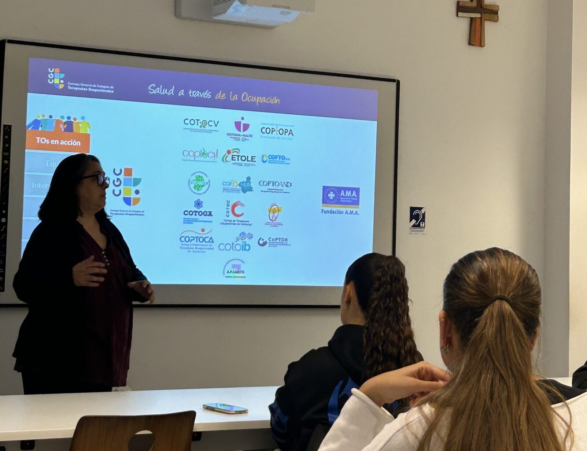Los estudiantes de la asignatura optativa Terapia Ocupacional en Entornos Naturales  recibieron esta semana una formación especialmente relevante para su futuro profesional. Inmaculada Íñiguez, presidenta del Consejo General de Colegios de Terapia Ocupacional (@consejoterapiaocupacional) visitó el campus para impartir una sesión centrada en el papel de la Terapia Ocupacional en contextos de emergencia y desastre.
