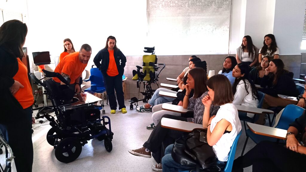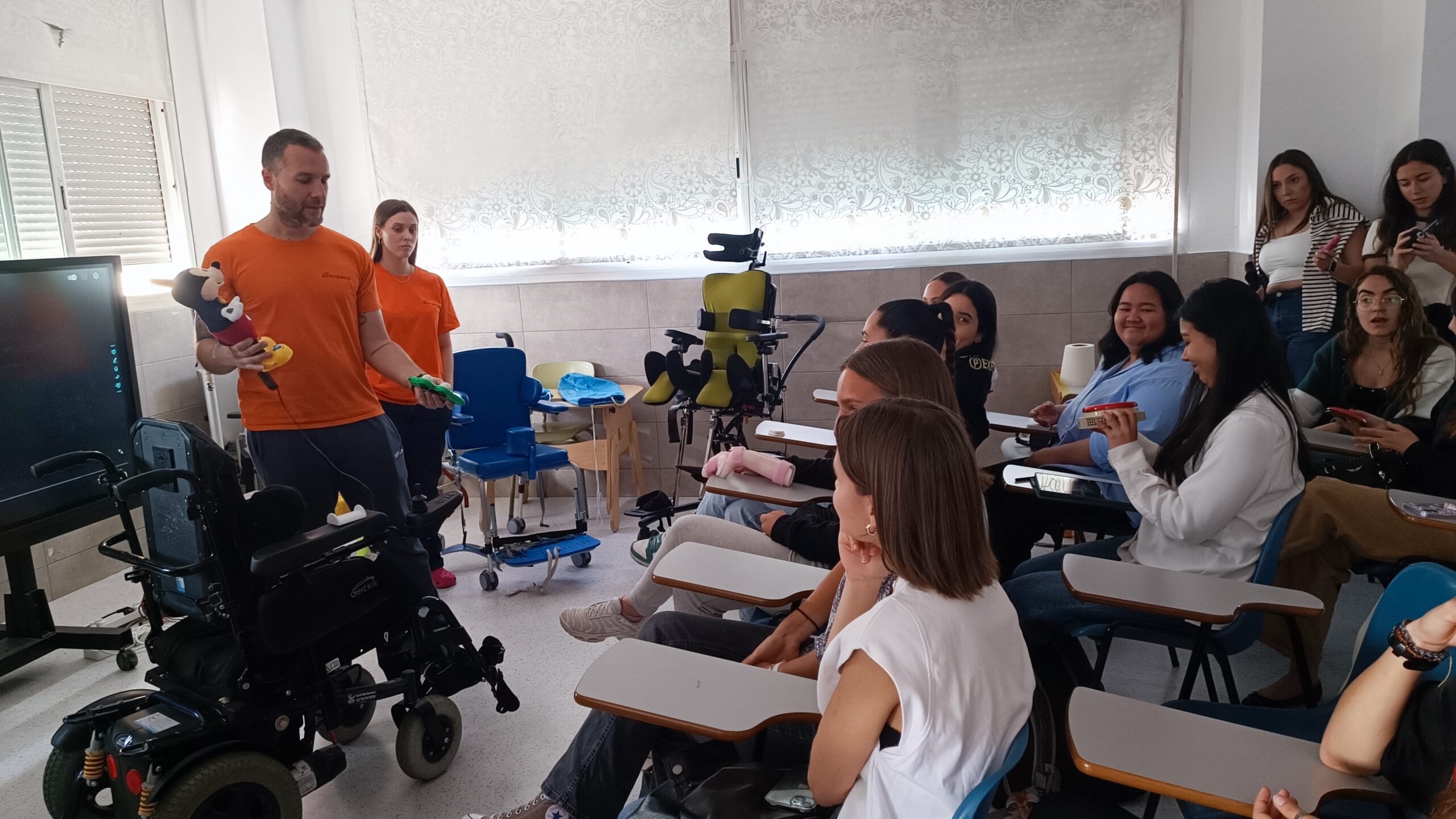 Durante la jornada, los estudiantes han podido conocer de primera mano cómo los profesionales de Terapia Ocupacional trabajan para favorecer la participación de los niños en sus actividades cotidianas, poniendo el foco no solo en las capacidades, sino también en el entorno y en las oportunidades de implicación en la vida diaria. Uno de los aspectos más destacados ha sido el uso de productos de apoyo, diseñados y adaptados para facilitar la autonomía en tareas como el juego, la alimentación o la comunicación.