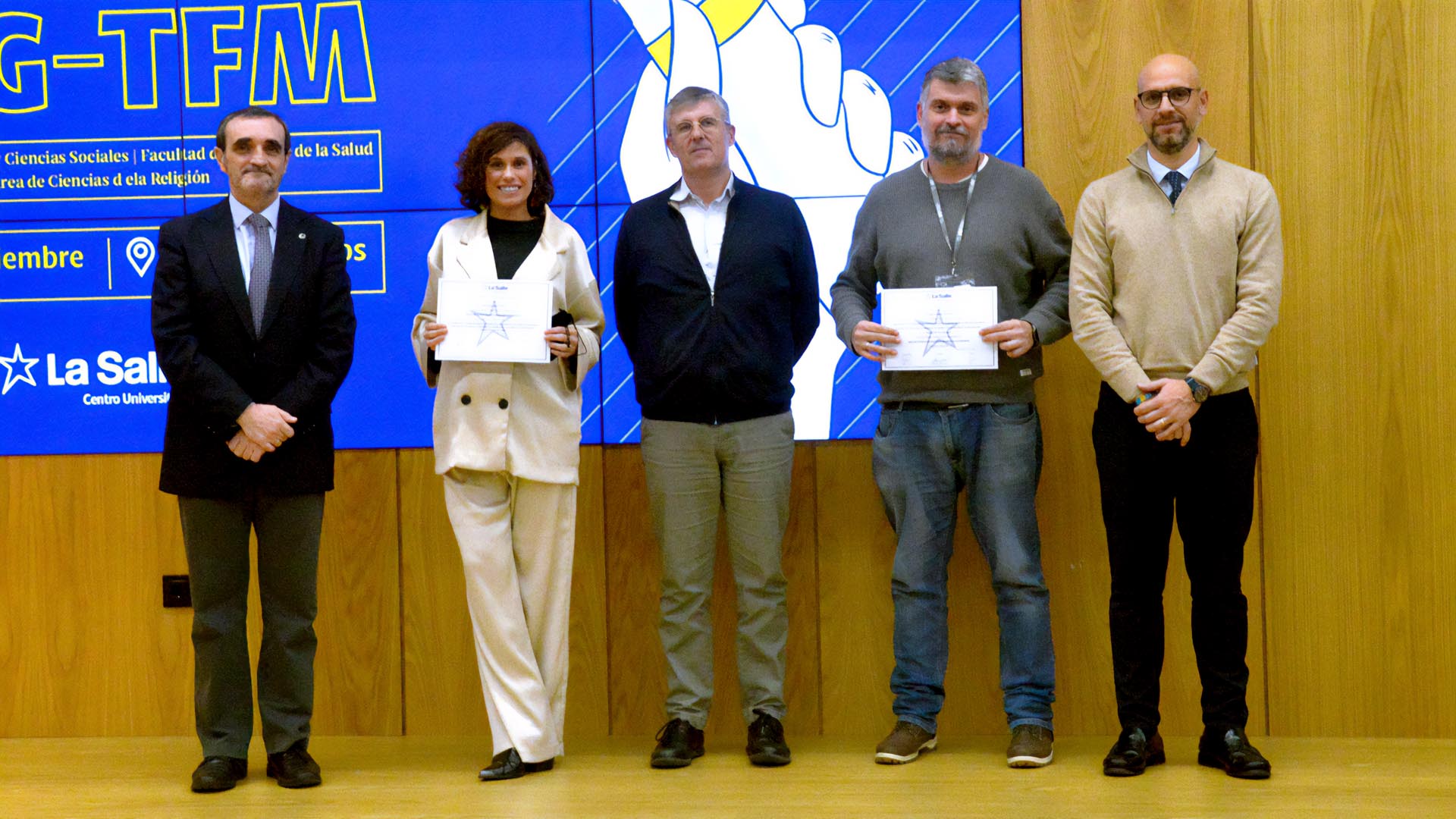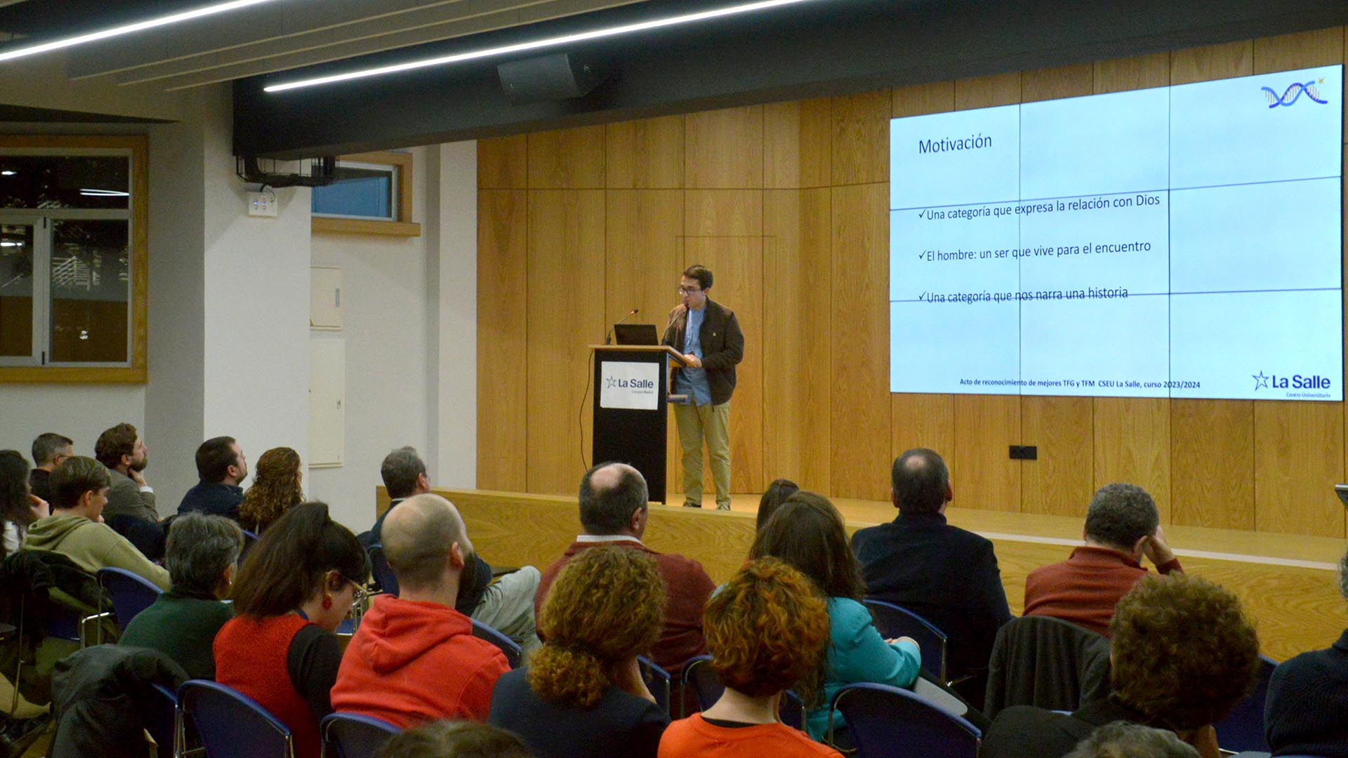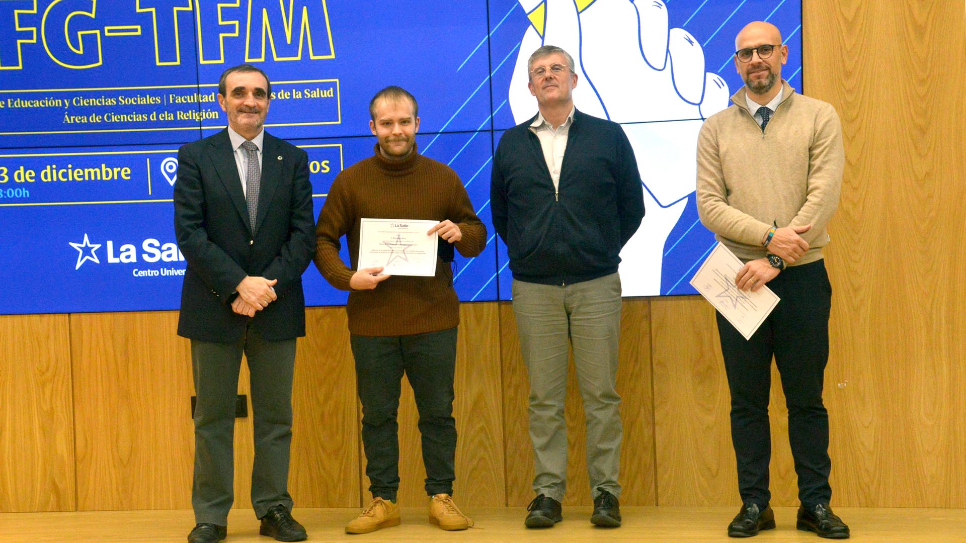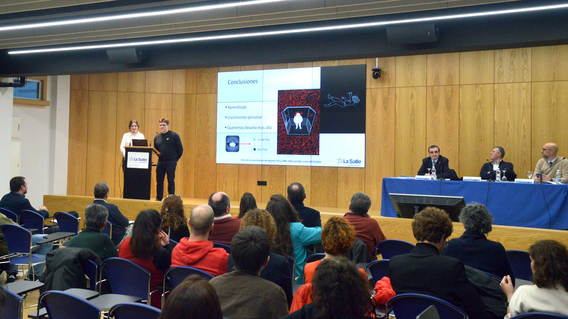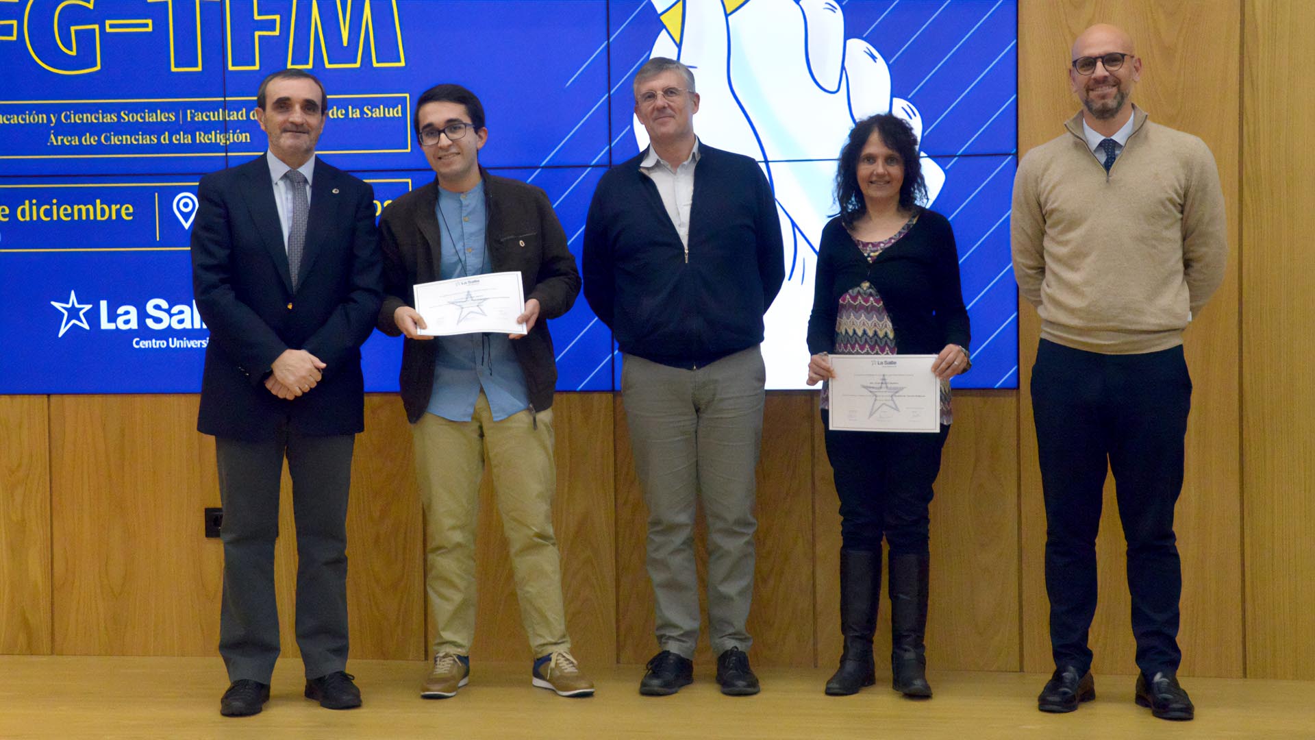 El pasado 13 de diciembre, La Salle Centro Universitario celebró el acto de reconocimiento a los mejores Trabajos de Fin de Grado (TFG) y Fin de Máster (TFM) del curso anterior. Este evento destacó por su apuesta por la excelencia académica y su compromiso con la innovación y los valores humanos.
