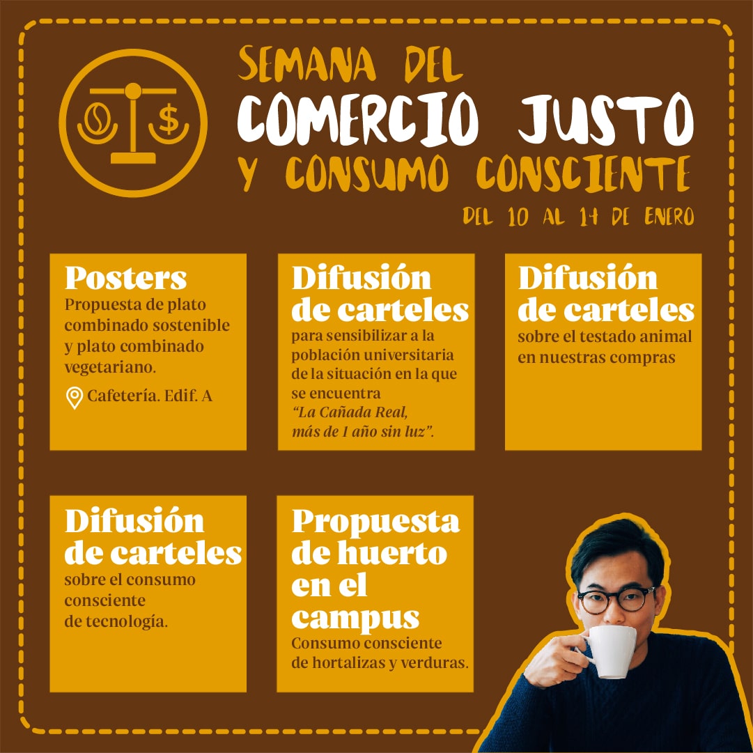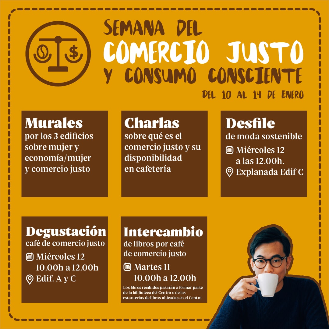 - Degustación de café de comercio justo en los edificios A y C. Miércoles 12 de 10.00h a 12.00h.