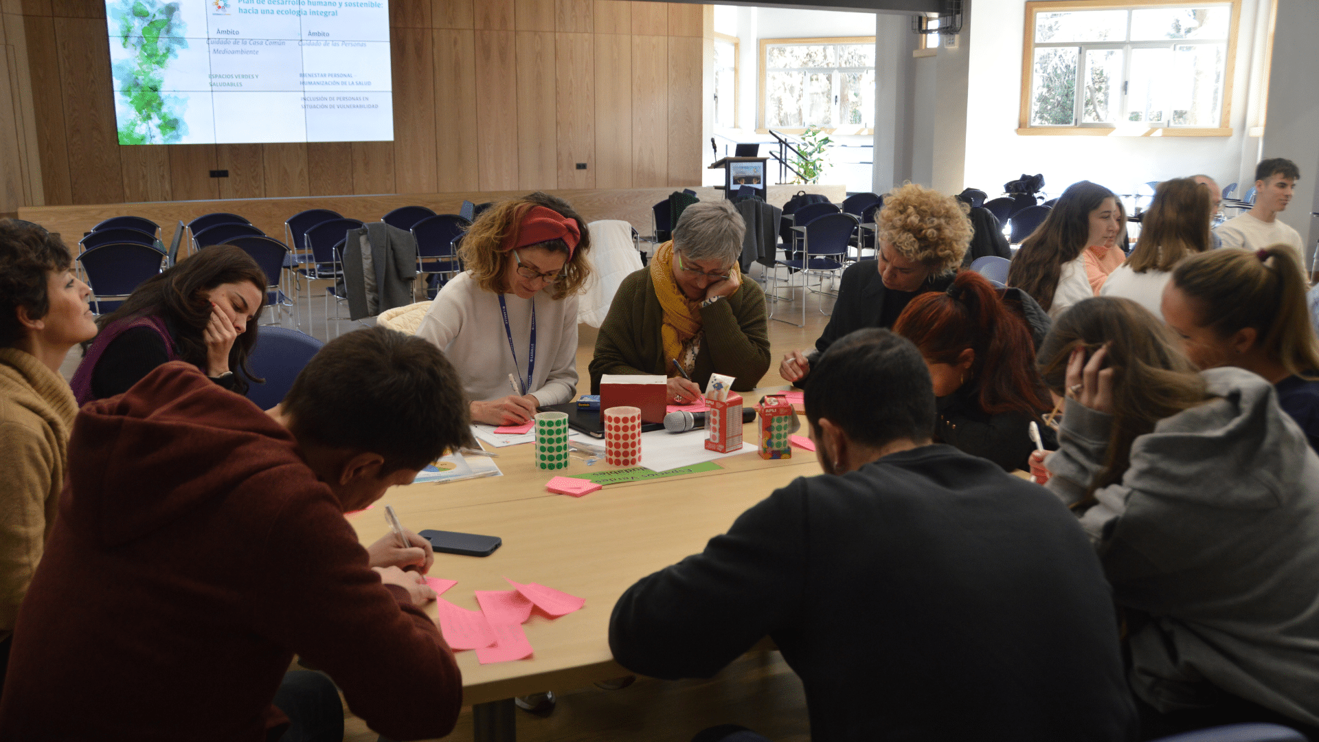 Tras la fase de consultas y aportaciones, el día 1 de marzo unas 30 personas de todas las facultades (Estudiantes, PDI, PAS) nos reunimos para seguir proponiendo iniciativas entorno a los dos grandes ámbitos, pero en especial, a los tres más votados: Inclusión personas en situación de vulnerabilidad, Bienestar personal / humanización de la salud y espacios verdes y saludables.