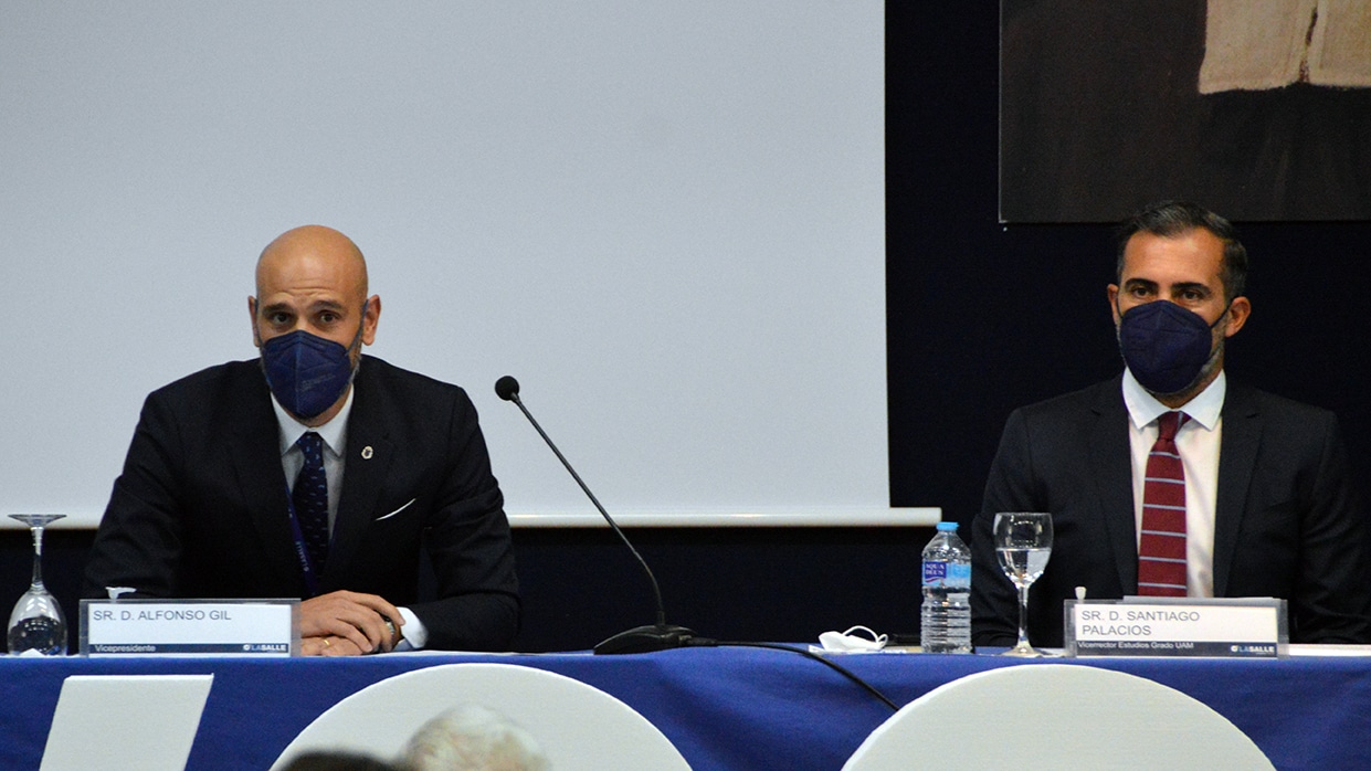 Lo acompañaban en la Mesa el Presidente del Centro Superior de Estudios Universitarios La Salle, el Hno. Maximiliano Nogales Morales, el Vicepresidente del Campus, Dr. Alfonso Gil Martínez, y La Secretaria Académica, Laura López Fernández.
