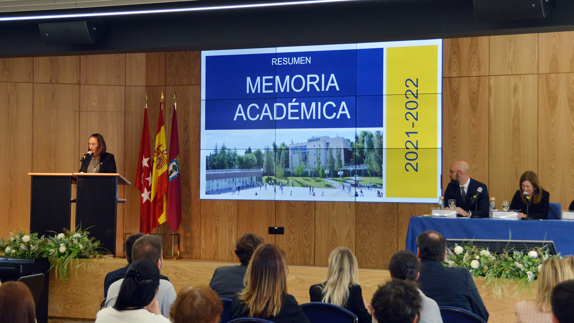 Lo acompañaban en la Mesa el Presidente del Centro Superior de Estudios Universitarios La Salle, el Hno. Maximiliano Nogales Morales, el Vicepresidente del Campus, Dr. Alfonso Gil Martínez, y La Secretaria Académica, Laura López Fernández, la cual ha sido la encargada de realizar la lectura de la memoria de actividades del curso académico anterior.