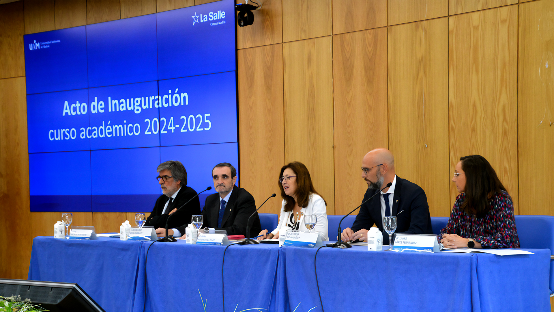 La acompañaban en la mesa el presidente del Centro Superior de Estudios Universitarios La Salle, el Hno. Maximiliano Nogales Morales, el vicepresidente del Campus, Dr. Alfonso Gil Martínez, y la secretaria académica, Laura López Fernández, la cual ha sido la encargada de realizar la lectura de la memoria de actividades del curso académico anterior.