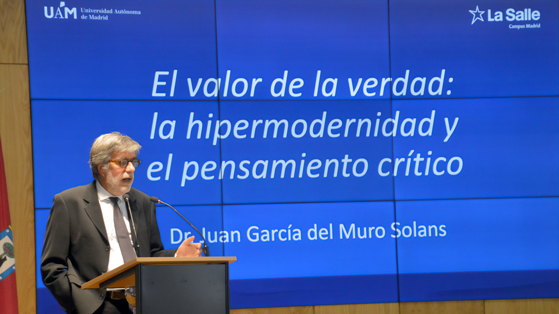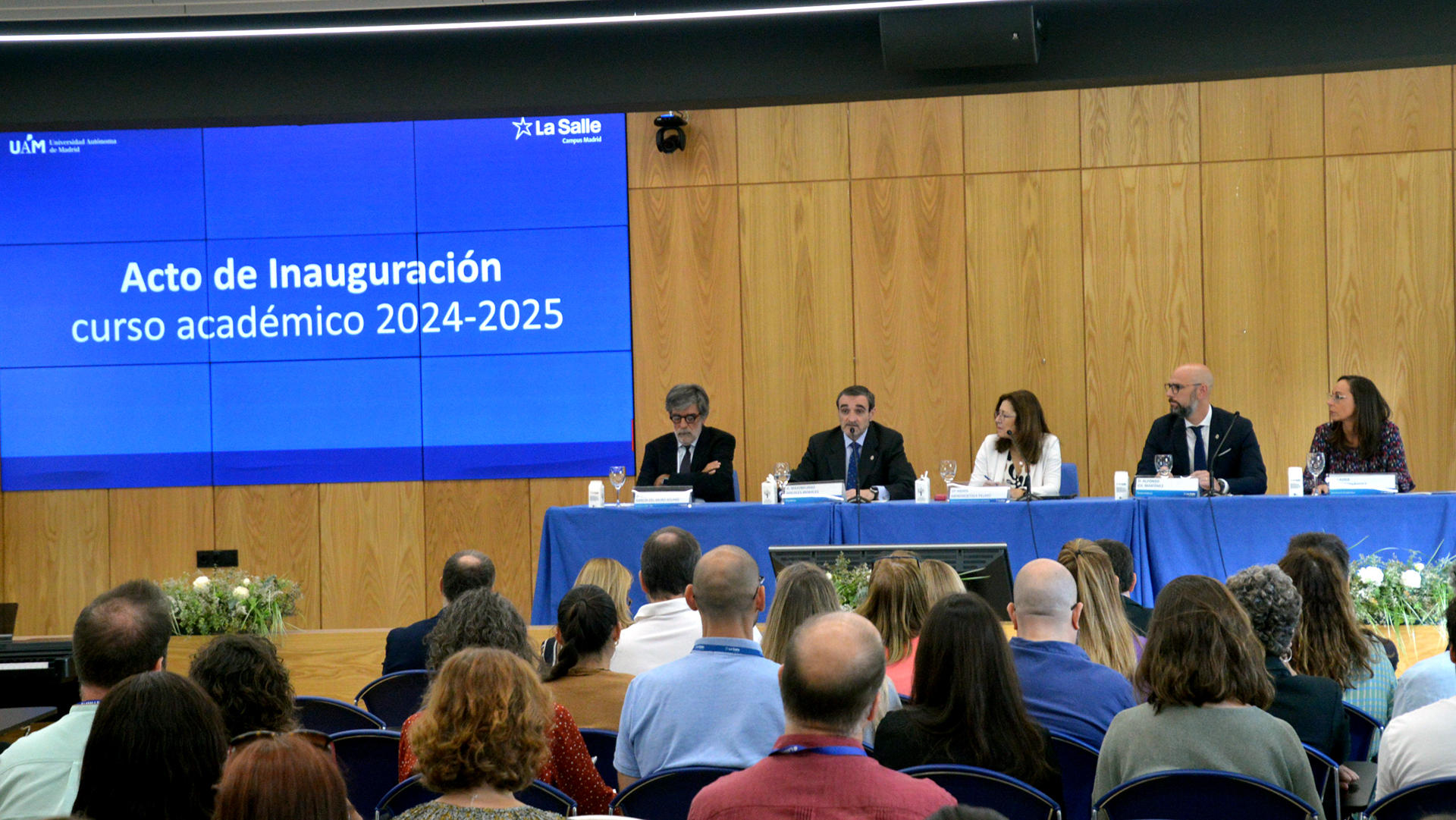 En el salón de actos de La Salle Centro Universitario de Madrid hemos celebrado hoy, 2 de octubre, el solemne Acto de Inauguración del Curso Académico 2024-2025. El acto ha comenzado con la interpretación del “Veni Creator” por parte del coro de alumnos de La Salle Maravillas, y ha continuado con la lección inaugural impartida por el Prof. Dr. D. Juan García del Muro, bajo el título “El valor de la verdad: la hipermodernidad y el pensamiento crítico”.