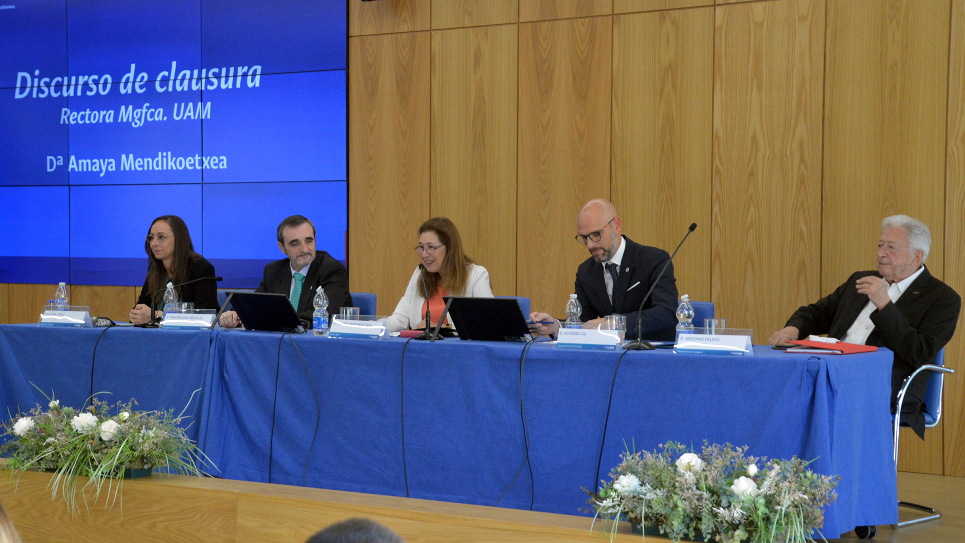El acto concluyó con el discurso de clausura de la Rectora Magnífica de la UAM, Amaya Mendikoetxea, que comienza ahora un nuevo mandato de seis años al frente de la institución. En su intervención, defendió la importancia de “promover la investigación y la ciencia y su transferencia a la sociedad, sin perseguir la rentabilidad económica, sino la rentabilidad social”. Además, subrayó que el compromiso universitario pasa por “formar personas libres, responsables y críticas”.