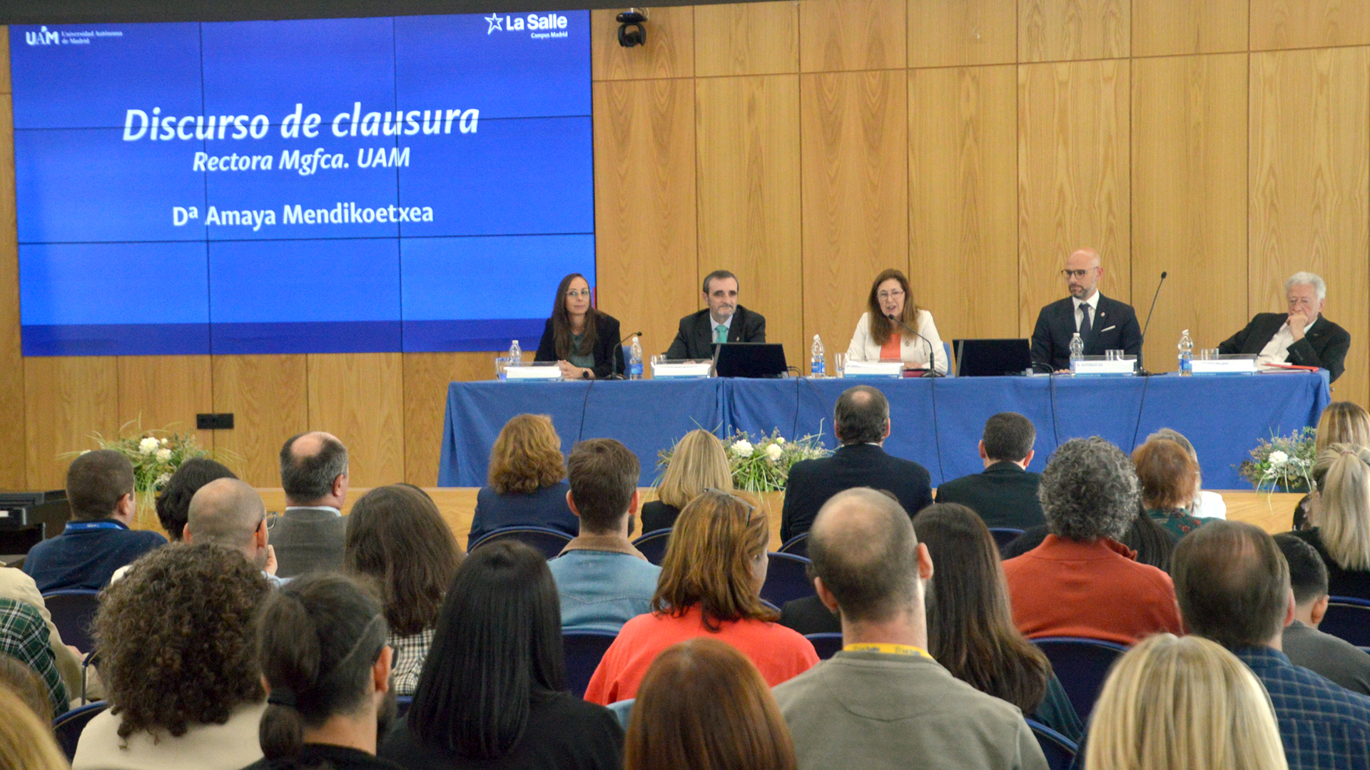 El 1 de octubre, el Salón de Actos de La Salle Campus Madrid acogió el Solemne Acto de Inauguración del Curso Académico 2025-2026, acompañado por la comunidad universitaria y la presencia de la Rectora Magnífica de la UAM, Amaya Mendikoetxea Pelayo.