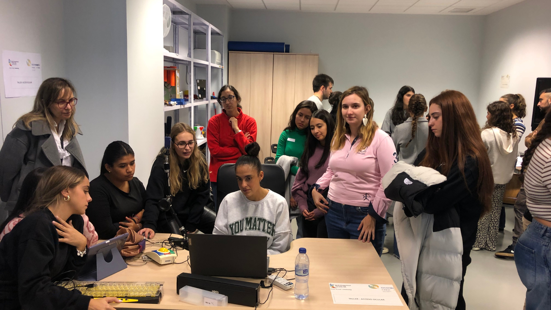 Con motivo del pasado día Internacional de la Terapia Ocupacional, los alumnos de 4º de Terapia Ocupacional han organizado el Taller AcerCAAte cuyo fin es visualizar el papel del terapeuta ocupacional en el ámbito de la accesibilidad a las tecnologías de ayuda para la comunicación para las personas con discapacidad. Este Taller forma parte del proyecto que venimos desarrollando en el centro universitario con la Fundación Romper Barreras e impulsado por el Área de Innovación, con el fin de contribuir a la difusión y sensibilización en los centros educativos de las posibilidades que ofrecen las tecnologías para la inclusión educativa.