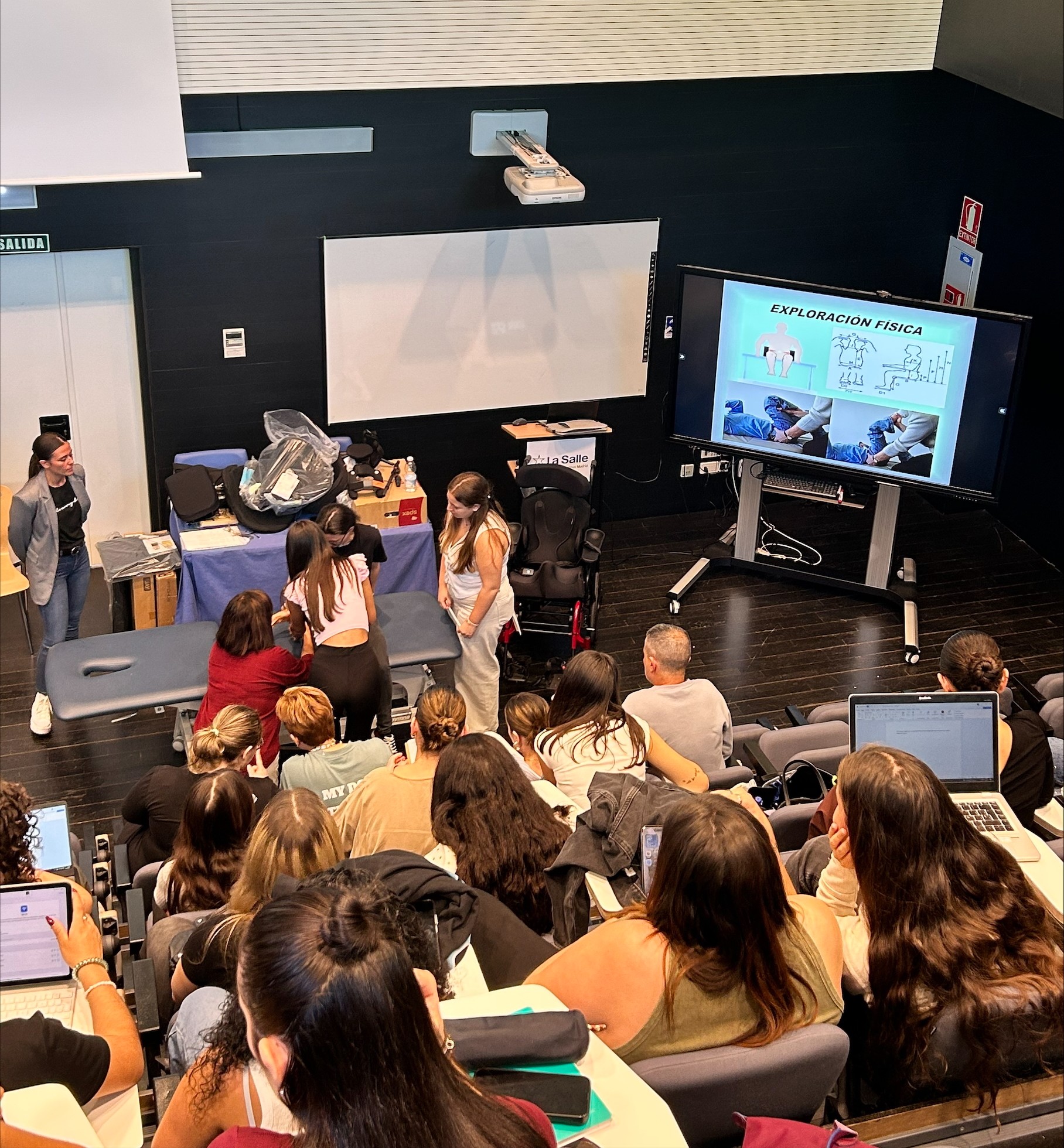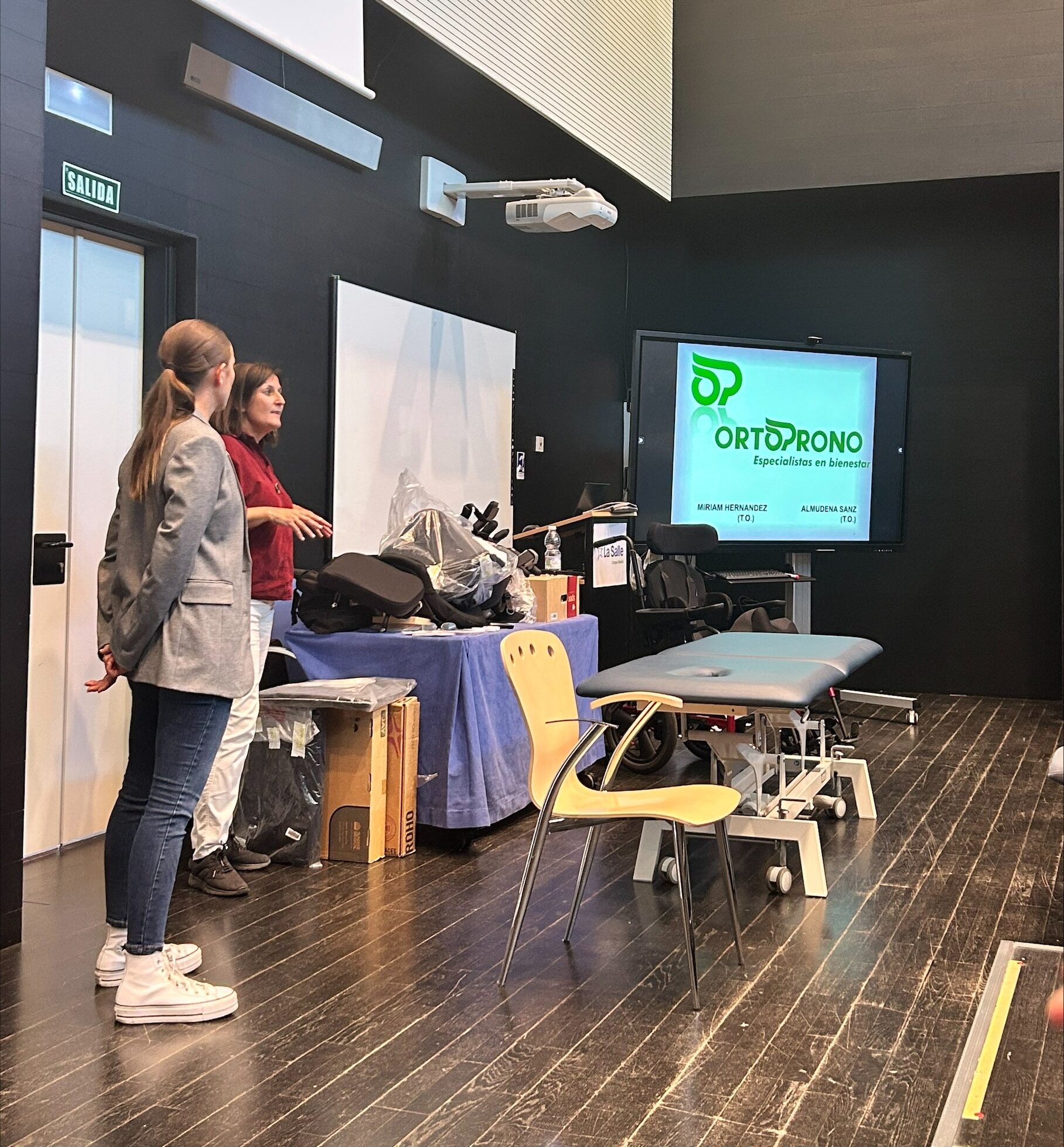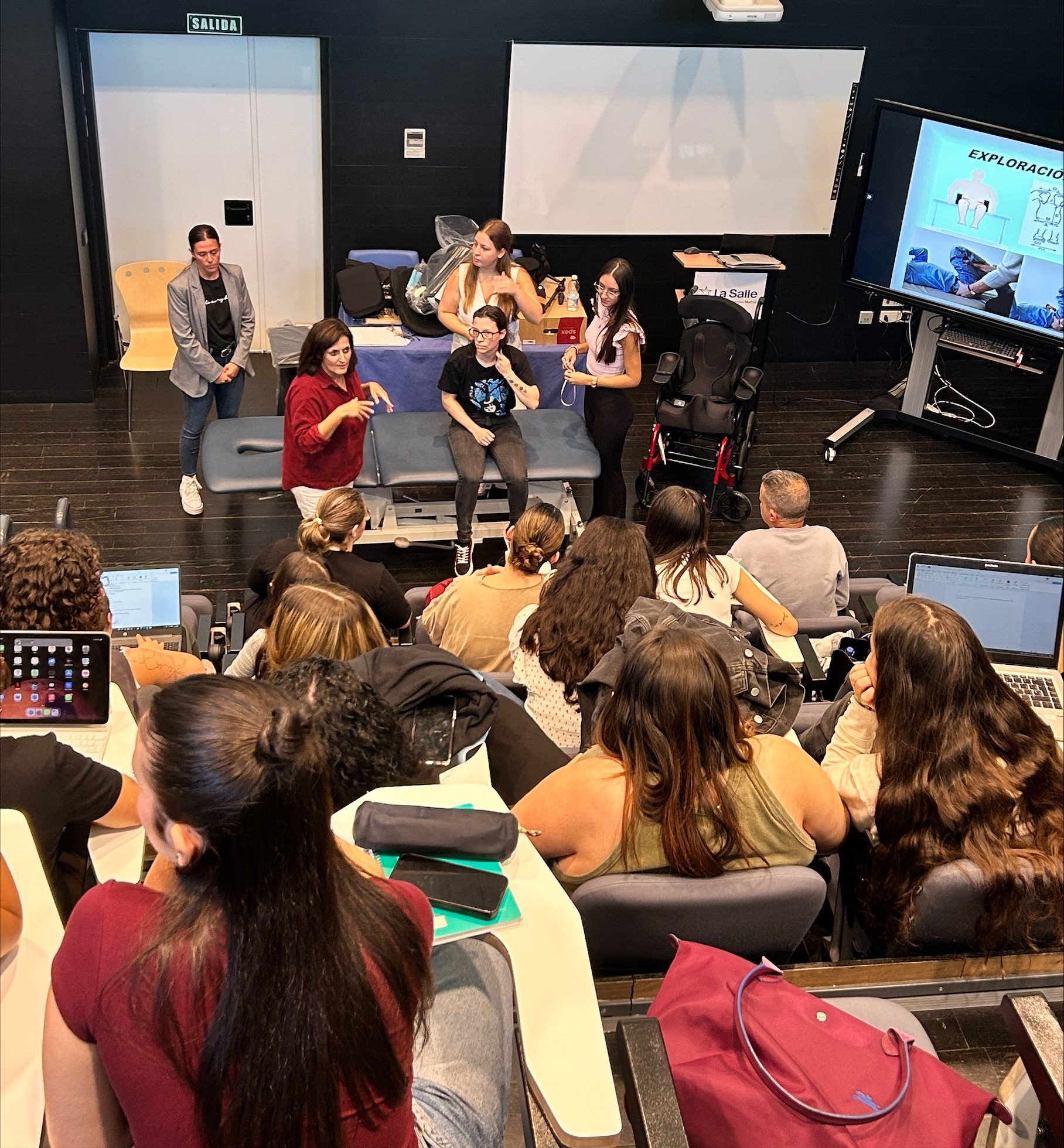Los alumnos de 4º de Terapia Ocupacional participaron en un taller práctico impartido por Almudena Sanz y Miriam Hernández (@mirihm3), profesionales de la ortopedia Ortoprono (@ortoprono), centrado en la sedestación y el uso de sillas de ruedas y cojines antiescaras.