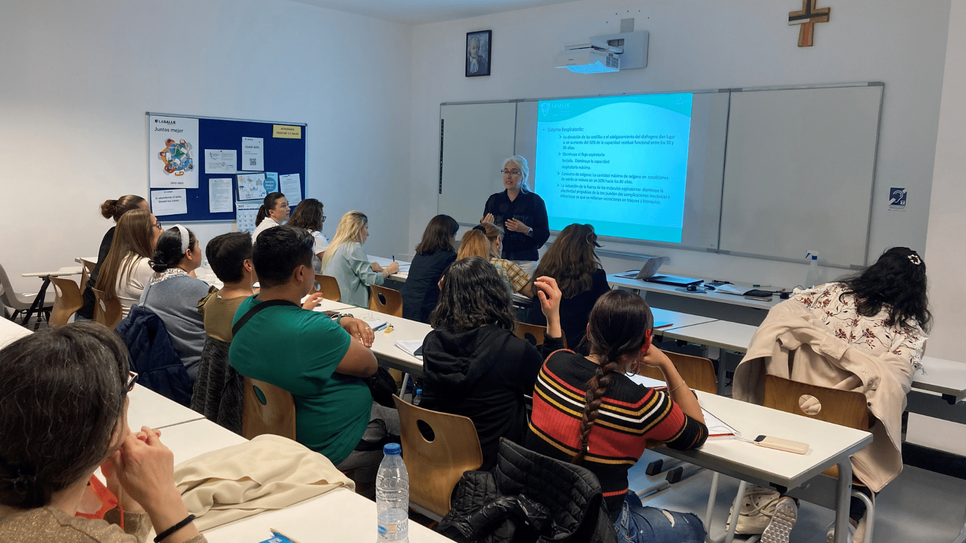 El pasado lunes 17 de abril, las profesoras del Grado de Terapia Ocupacional, Mª Gracia Carpena y Nuria Rebaldería, impartieron en las instalaciones de La Salle Centro Universitario un taller práctico a estudiantes de la Escuela de Salud de Formaemplean. Las alumnas y alumnos pudieron experimentar qué se siente cuando se envejece y aprendieron cómo ayudar mejor a las personas mayores desde su profesión.