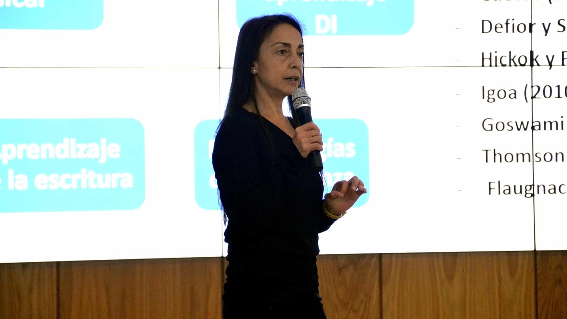 La presentación de los Trabajos de fin de grado comenzó con la “Mejora de la competencia escritora a través de un entrenamiento fonológico y musical: intervención en un caso de adulto con discapacidad intelectual” por Érica Matilde Zisa.