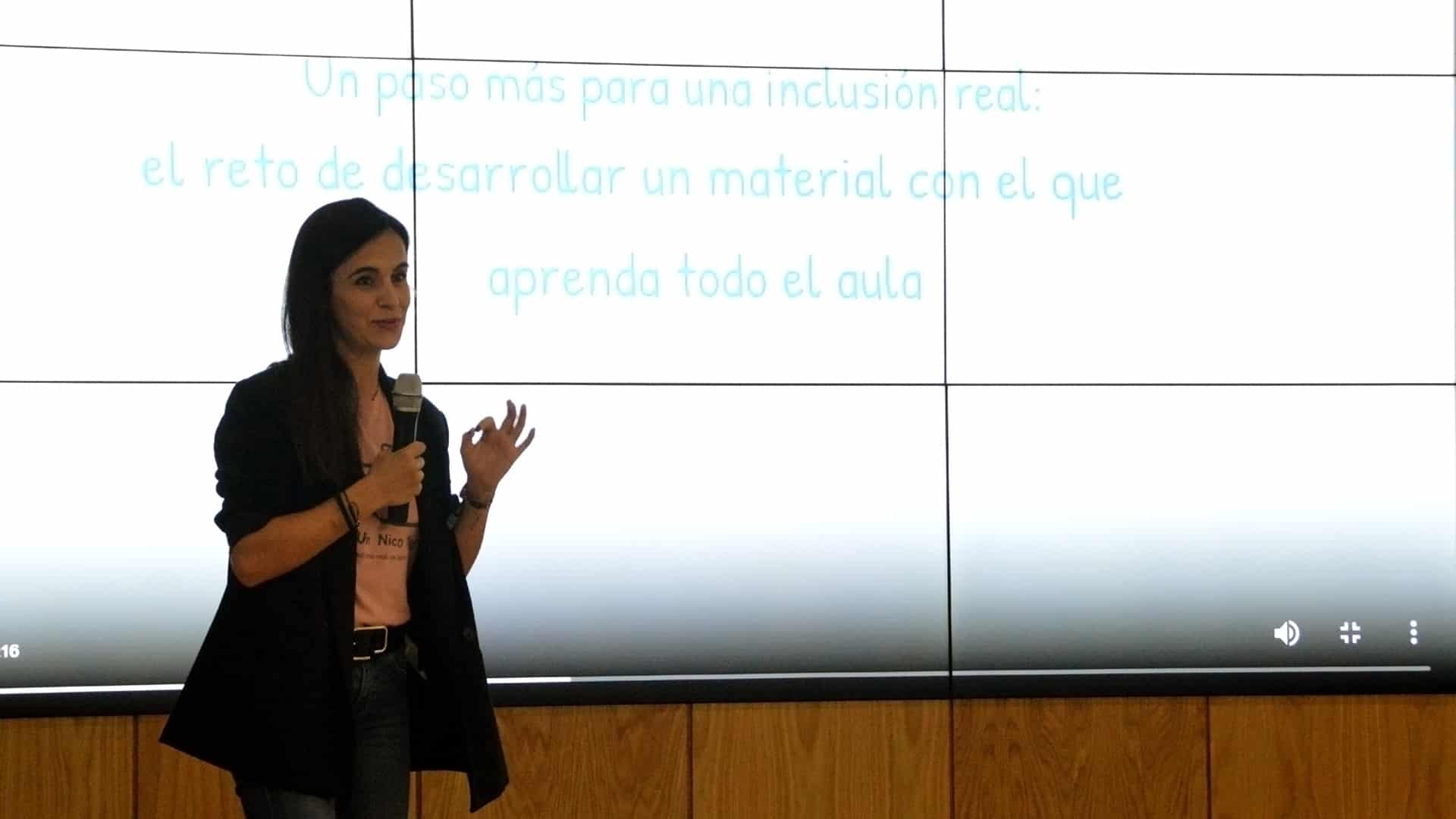 El segundo TFG presentado fue “Un paso más para una inclusión real: el reto de desarrollar un material con el que aprenda todo el alumnado” por Carmen Mañez Álvarez.